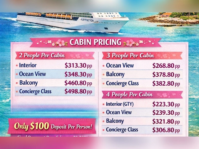 CELEBRATE MOTHERS DAY WEEKEND AT SEA! Looking for a super special way to honor Mom? Join us for an unforgettable MOTHERS DAY WEEKEND AT SEA! This in-person event is packed with fun, relaxation, and lots of love. Whether you're sailing, dining, or just soaking in the vibes, it's the perfect way to say thanks to the amazing moms out there. Don't miss out on making memories that'll last a lifetime! PRICES ON FLYER. SEE FLYER FOR PORTS OF CALL. CONTACT ME AT 754-816-2051 FOR AVAILABILITY. Click the link to book: https://www.jotform.com/app/260623830335149 [https://www.jotform.com/app/260623830335149]