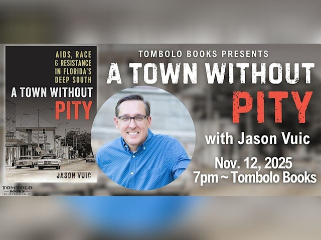 Tombolo Books welcomes back award-winning author Jason Vuic for an evening discussing his latest book A Town Without Pity: AIDS, Race, and Resistance in Florida’s Deep South. In A Town Without Pity Vuic recounts two heartbreaking stories from Arcadia that rose to national prominence at the end of the Reagan era and forced the town to reckon with not only AIDS hysteria but also the legacies of a racist past. More about A Town Without Pity In the 1980s, the tiny town of Arcadia, Florida, was “fifty miles and fifty years from Sarasota.” With its cowboy roots, low-wage agricultural industries, and violent frontier history, Arcadia was a curious mix of the desolate ranchlands of West Texas and the stately homes and bitter race relations of the South. In A Town without Pity, award-winning author Jason Vuic recounts two heartbreaking stories from Arcadia that rose to national prominence at the end of the Reagan era and forced the town to reckon with not only AIDS hysteria but also the legacies of a racist past. This book delves into the case of James Richardson, a Black migrant worker accused in 1967 of poisoning his seven children. Richardson spent twenty years in prison due to suppressed evidence for a crime he didn’t commit. Vuic also tells the story of the public mistreatment of the three Ray brothers, white school-age children with hemophilia who contracted the HIV virus from a tainted medicine called factor VIII. The Rays were barred from attending their local church and school, and when their house burned down in a mysterious arson, reporters dubbed Arcadia the “town without pity.” Through extensive use of newspapers, court records, and interviews, Vuic shows how the actions of authorities and residents left little room for the voices that spoke up against bias, harassment, and coercion. At the same time, this cautionary tale places Arcadia as a microcosm of many small towns in the late twentieth-century United States, reminding readers of the staying power of social divisions and prejudice even after the achievements of the civil rights movement. Jason Vuic is the author of The Swamp Peddlers: How Lot Sellers, Land Scammers, and Retirees Built Modern Florida and Transformed the American Dream, winner of the Florida Book Awards Gold Medal for Florida Nonfiction and the Florida Historical Society Charlton Tebeau Award. Vuic is also the author of The Yucks: Two Years in Tampa with the Losingest Team in NFL History and The Yugo: The Rise and Fall of the Worst Car in History.