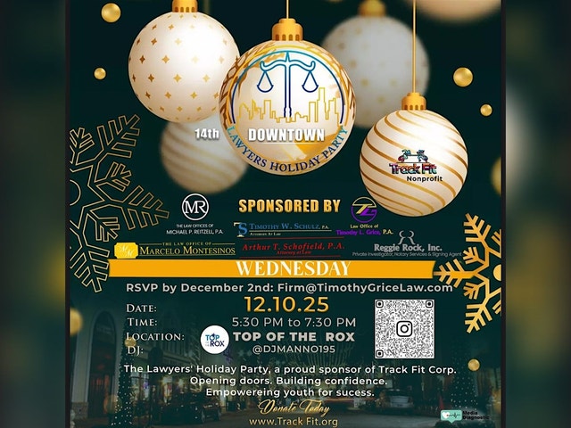 14th Annual Downtown Lawyers’ Holiday Party + Jamaica Relief Support Invitation Required - The 14th Annual Downtown Lawyers’ Holiday Party is back, and this year, we are also supporting Jamaica Relief efforts. Enjoy a festive evening with fellow legal professionals while contributing to a great cause. Don't miss out on this opportunity to network, unwind, and make a difference! https://trackfit.org/donate-to-rebuilding