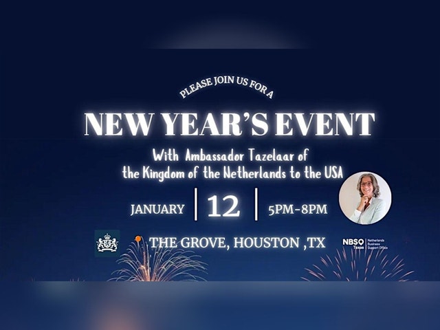 NETHERLANDS NEW YEARS RECEPTION We are thrilled to invite you to kick off 2026 with us at the Netherlands New Year’s Reception in Houston, with Birgitta Tazelaar, Ambassador of the Kingdom of the Netherlands to the United States of America. The reception takes place in the context of a working visit to Texas by senior representatives of the Kingdom of the Netherlands. This festive evening brings together the Dutch business community and valued partners across Texas for an inspiring start to the new year. Join entrepreneurs, professionals, investors, and ecosystem partners for an evening full of insights, networking, and celebration at The Grove in Houston. We are also honored to welcome our other special guests: * Danielle van Mulukom, Head of Economic Affairs, Embassy of the Kingdom of the Netherlands in Washington DC * Lisette den Breems, Consul-General of the Kingdom of the Netherlands in Miami The reception offers a unique opportunity to connect with key members of the Dutch–U.S. business and innovation ecosystem, exchange perspectives on transatlantic cooperation, and strengthen ties at the start of 2026. We look forward to welcoming you in Houston and raising a glass to the year ahead.