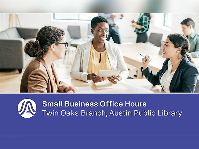 Are you the owner of a certified firm, a small business owner, or resident interested in starting a small business? Join us at City of Austin Small Business Office Hours to connect with resources, programs, and services. Participating departments include Economic Development, Financial Services, Austin Public Library, Austin Energy, and Small and Minority Business Resources. Staff will be on hand to answer questions and make referrals to available programs and services offered by City departments and local business support organizations. No appointments necessary - just show up!