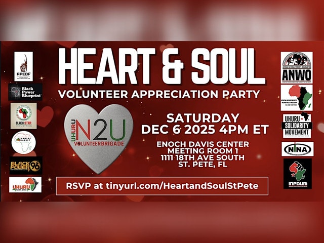 Join us for an afternoon of celebration, community, and gratitude! Our volunteers are truly the Heart and Soul of the Uhuru Movement!