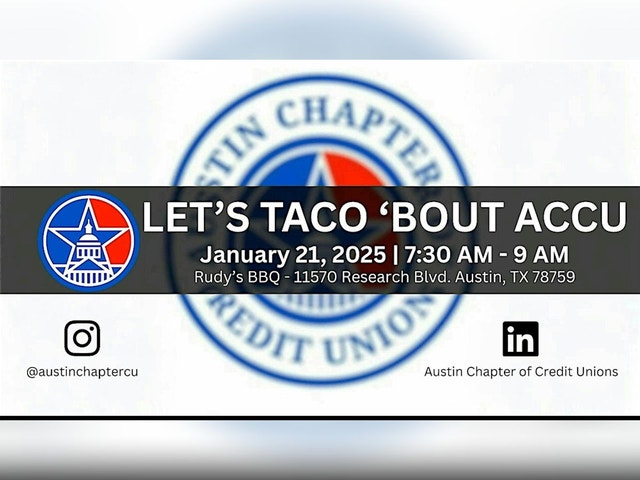 Happy New Year ACCU crew! We are kicking 2026 off with a breakfast social at Rudy’s BBQ to “Taco” ‘bout ACCU! Come hungry, ready to mingle, and meet the 2026 board member!