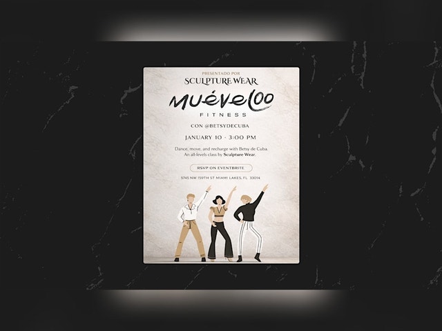 Sculpture Wear invites you to move, sweat, and reconnect with your body through the Mueveloo Fitness Dance Experience with @betsydecuba. This high-energy dance workout blends rhythm, movement, and intention into a session designed for all levels. Expect a fun, empowering atmosphere where fitness meets self-expression—no pressure, no perfection, just movement. Held inside the Sculpture Wear space, this event is about feeling confident in your body while enjoying music, motion, and community.