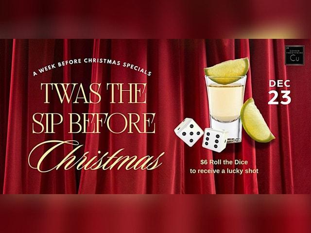 It all comes down to this. Twas the Sip Before Christmas is the final night of The Week Before Christmas at Copper 29 Bar 🎄🥃 Doors open at 5 pm, and this is your last chance to celebrate with us before Christmas takes over. For $6, roll the dice and unlock a mystery shot chosen by chance. Maybe you end up on something smooth, something bold, or something that makes you question Santa’s list entirely. The fun is in not knowing where the roll will take you. Gather your friends, take your shot at fate, and close out the holiday countdown in true Copper 29 fashion. One night, one roll, and one last toast before Christmas arrives!