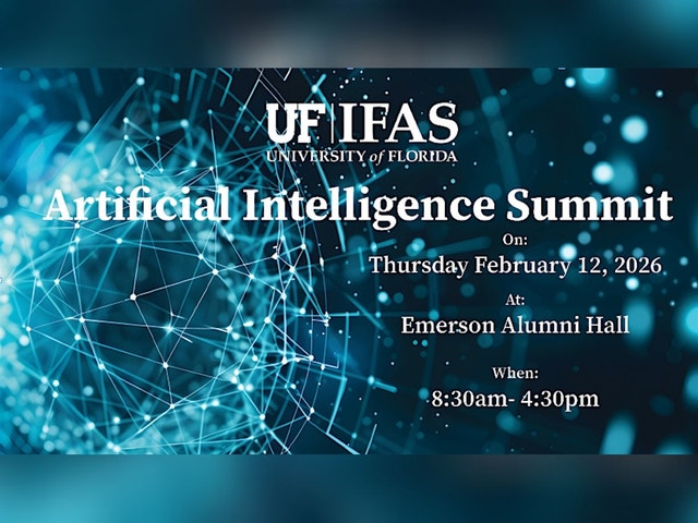 Welcome to the UF/IFAS AI Summit 2026! Join us at Emerson Alumni Hall for a day filled with exciting presentations, discussions, panels, and networking opportunities centered around the latest advancements in artificial intelligence. Whether you're a seasoned AI professional or just starting to explore the field, this event is perfect for anyone interested in the intersection of technology and agriculture. Don't miss out on this chance to learn from industry experts, connect with like-minded individuals, and stay ahead of the curve in the ever-evolving world of AI. See you there! UF/IFAS AI Summit 2026 - Artificial Intelligence - Institute of Food and Agricultural Sciences - University of Florida, Institute of Food and Agricultural Sciences - UF/IFAS [https://ifas.ufl.edu/artificial-intelligence/ai-summit/]