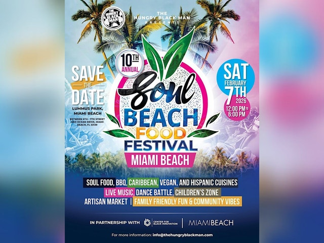 ABOUT THE EVENT: Join us on the sands of Miami Beach for the 10th Annual Soul Beach Food Festival, one of South Florida’s most anticipated celebrations of flavor, culture, and community! Presented by The Hungry Black Man Media in partnership with The Center for Black Innovation and The City of Miami Beach, this year’s milestone festival brings together the best of South Florida’s and the nation's culinary soul—from Soul Food and savory barbecue and Caribbean classics to vegan delights and bold Hispanic flavors. Bring your family, your friends, and your appetite for a day filled with: 🍗 Soul Food, BBQ, Caribbean, Vegan, and Hispanic Cuisine 🎶 Live Music and Dance Battles (Miami-Dade vs Broward County Dance Battle) 👩🏽🍳 Artisan Market with Local Creators 🎡 Children’s Zone and Family Fun 💃🏾 Community Vibes by the Ocean Whether you’re coming for the food, the energy, or the Miami sunshine, Soul Beach is where South Florida’s culture comes to life!