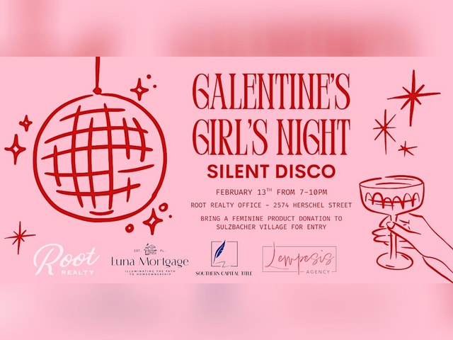 Grab your besties and join us for a fabulous girl's night of dancing under the stars! Come get down with Silent Disco featured by Hush Hush and enjoy complimentary sweet treats and champagne with your gals! Bring a feminine product donation to Sulzbacher Villiage for entry. Dancing will be in the back of Root Realty's office. Thank you to our amazing Sponsor's for this event: Cara Potter with Luna Mortgage, Stephanie Lempesis with State Farm, & Serene at Southern Capital Title!