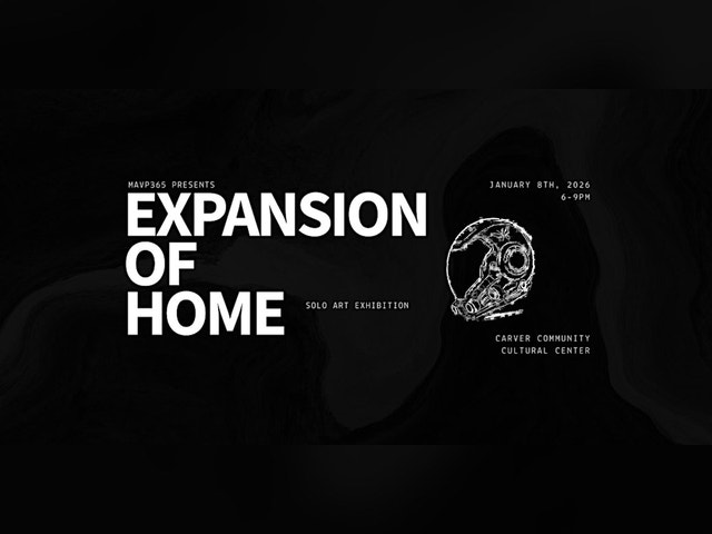 DON'T MISS EXPANSION OF HOME! Come check out the solo art exhibition by MAVP365. Through personal, expressive works, the show reflects on being proud of where we come from, even when we’re somewhere new, and reminds us that home isn’t a place but something we carry inside. We are home. Home is inside us. Perfect for art lovers looking to experience something personal and profound. Save the date and join us to experience Expansion of Home at the Carver Community Cultural Center.