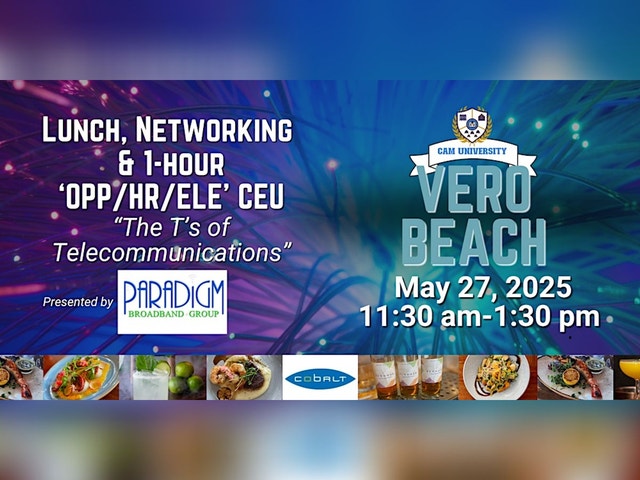 CAM U VERO BEACH Complimentary Lunch and 1-hour 'OPP/HR/ELE' CEU | Cobalt