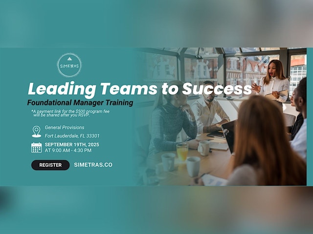 Kickstart your journey as a manager in the heart of downtown Fort Lauderdale! Our Leading Teams to Success professional development intensive—hosted at the vibrant General Provision co-working space—equips new and aspiring managers with science-backed tools to inspire, motivate, align and elevate their teams. Stop leaving your team's success—and your leadership potential—to chance. Without strong leadership, teams become disengaged, disconnected from goals, and underperform. This intensive Leading Teams to Success workshop is your solution: designed for both new managers looking to dramatically shorten their learning curve and aspiring leaders ready to demonstrate their commitment to stepping into a managerial role. You'll gain practical, immediate tools to build stronger teams, boost morale, improve communication, and drive organizational success—transforming disconnection into alignment and underperformance into high achievement. Don't miss this investment in your future: most companies have development budgets per team member. Take the first step to unlock your leadership potential today—leverage your company's support and secure your spot! Fuel your growth with premium coffee, tea, gourmet snacks, and enjoy a meal at a local restaurant for lunch, then unwind post-session at an exclusive happy hour in a sophisticated downtown hotspot. Leave empowered to turn talent into extraordinary team outcomes. *ATTENTION: THIS IS A PAID EVENT! ONCE YOU RSVP, A PAYMENT LINK WILL BE SENT TO YOU TO REGISTER FOR THE WORKSHOP. Perfect for: New managers leading teams for the first time, or aspiring managers preparing to manage teams. Learner's Will: * Build inclusive and motivated teams * Give effective feedback and coaching * Lead through change and transitions * Have difficult conversations with confidence * Maximize the impact of 1:1 conversations * Foster collaboration and shared success