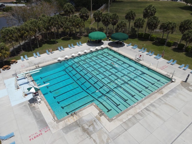 Community space with sports courts, picnic areas, and a water park, plus a boat ramp.