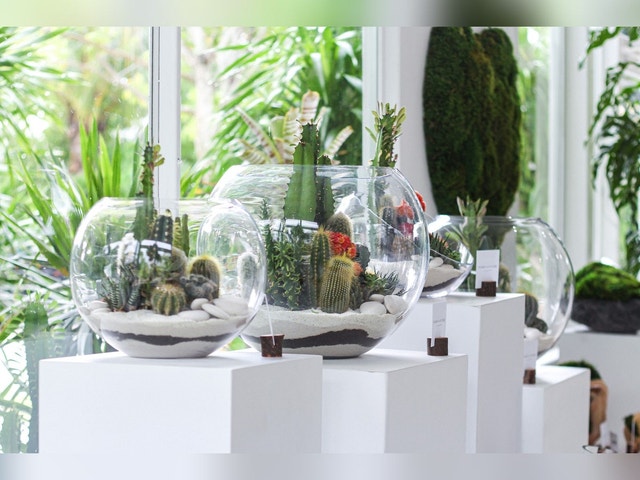 Lush shop offering plants, art installations, and high-quality tea, plus small pastries.