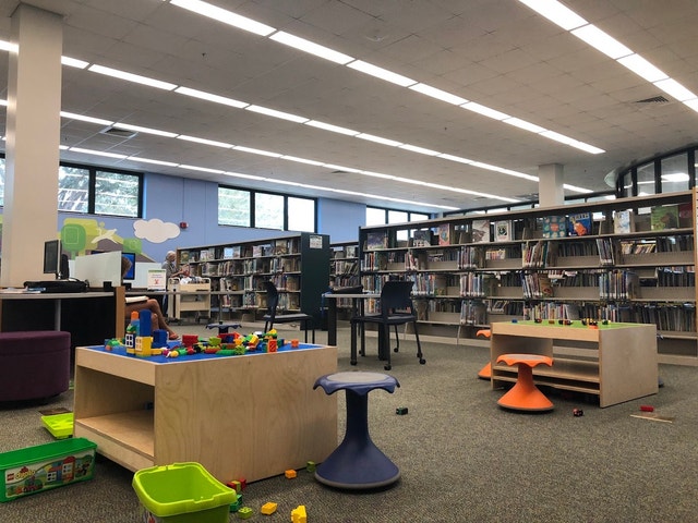 Community public library offering spaces for learning and relaxation, plus books and media, and passport services.