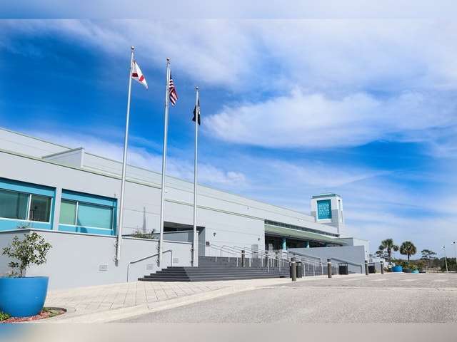 Modern building near the beach that hosts conventions and other events, including festivals and competitions.