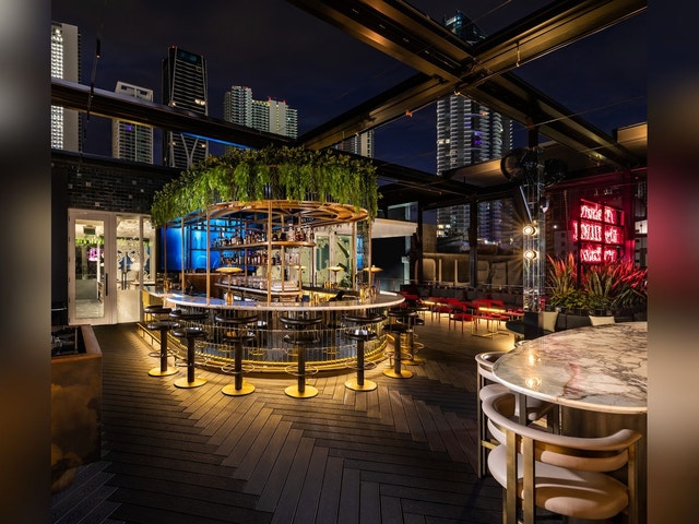 Trendy fusion restaurant offering Asian-inspired dishes, seafood, and a rooftop.
