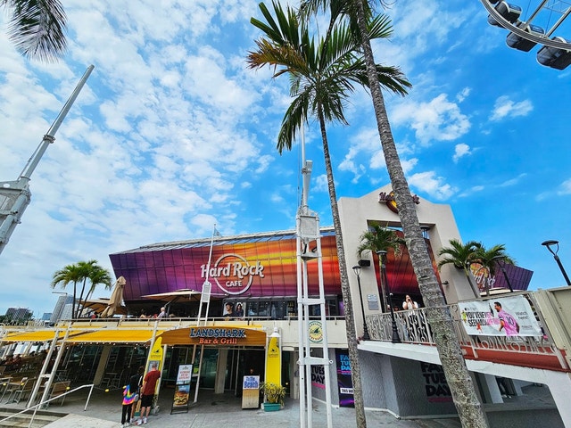 Island-themed spot for American food and drinks with live music, plus an oversized blender and a suspended airplane.