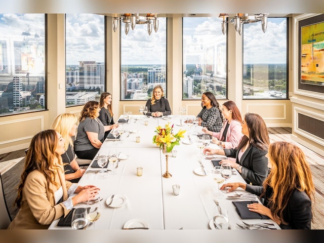 Elegant social club with panoramic views offering networking events, fine dining, and event space.