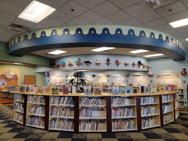 Public library featuring books and movies plus computers for internet access.