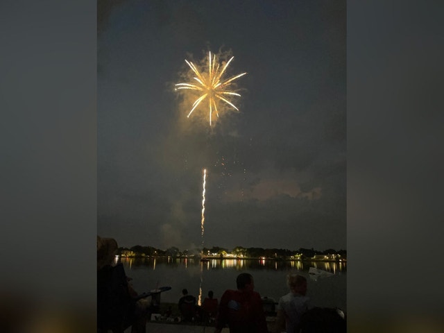 Green space along Lake Silver featuring regular water skiing shows & a castle-themed play structure.