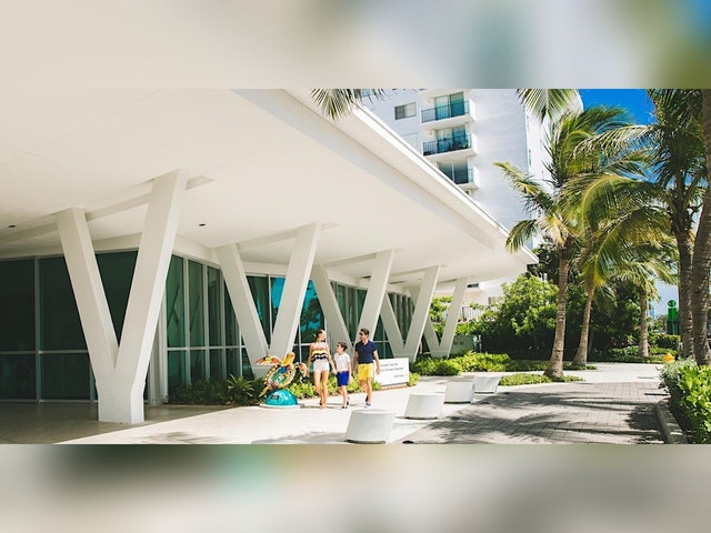 Well-kept beach destination featuring pools, a slide and a park.