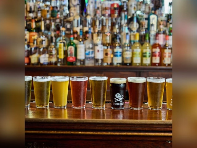 A pub menu with all-natural meats, a large beer selection & the signature martini plus a large deck.