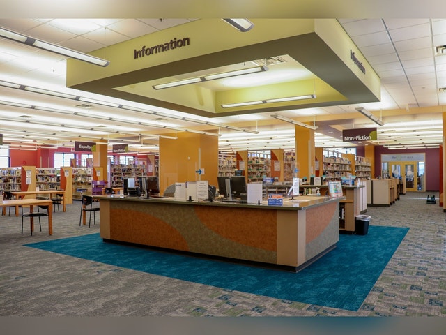 Large library featuring books for children and adults, plus computers, DVDs and study rooms.