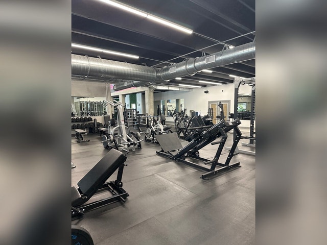 Gym with up-to-date equipment and a variety of membership options, plus a smoothie bar.