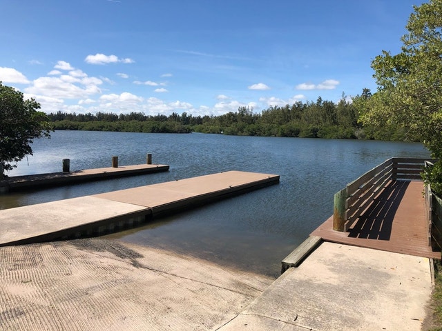 Park with a boat ramp, observation tower, and opportunities to view manatees and dolphins.