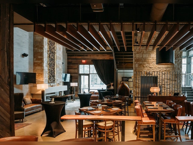 Each level has unique offerings with a 1st floor whiskey bar, 2nd floor dining room & rooftop patio.