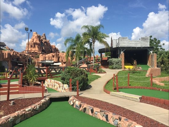 2 18-hole mini golf courses with a mining theme & waterfalls, plus a gift shop for souvenirs.