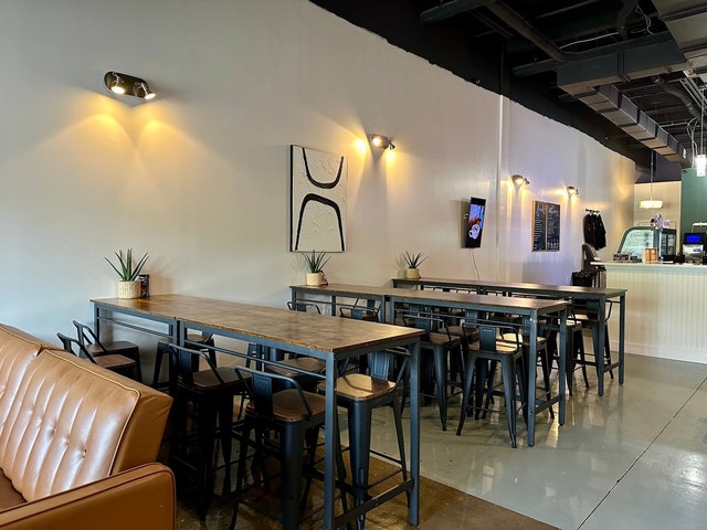 Cozy coffee shop offering breakfast and sandwiches, plus wine, beer, and smoothies.