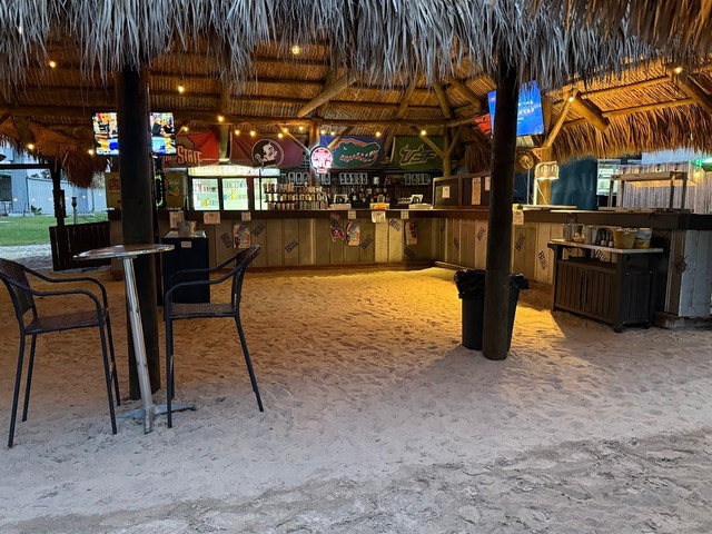 Lakeside bar with a beachy, Key West vibe, featuring live music, volleyball, and cornhole.