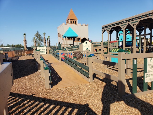Park with a playground, tennis and basketball courts, and baseball and soccer fields, plus picnic tables.