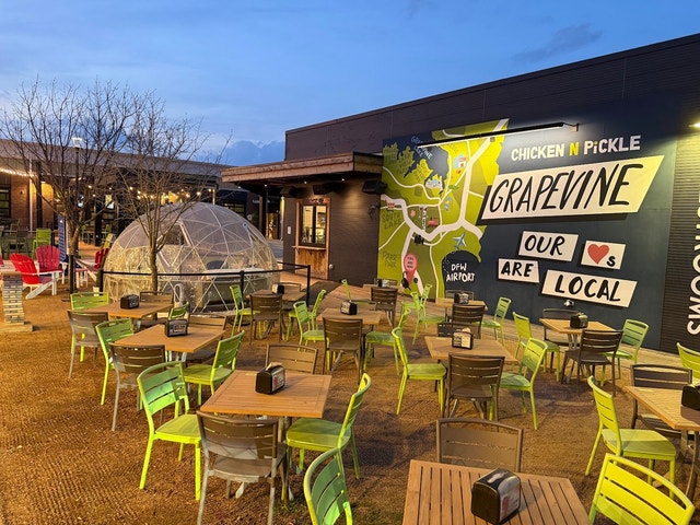 Family-friendly destination featuring rotisserie chicken, beer, and cocktails, plus pickleball courts and games.