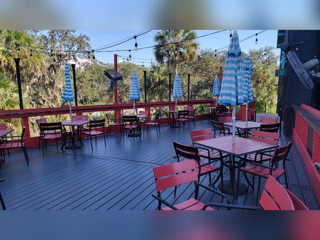 Lively tiki-themed hub featuring a riverside deck, a pub grub menu & happy hour, plus sports on TV.