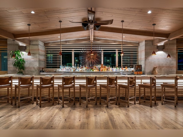 Grilled meats are the focus at this rustic-chic hotel restaurant with a patio & city views.