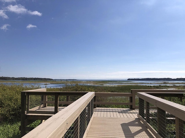 This wildlife preserve has hiking trails & two parks with sports fields, a playground & a boardwalk.