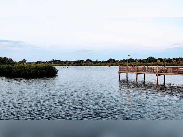 Park offering a boat launch ramp, fishing, and a playground, plus a long pier.
