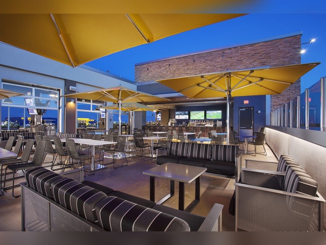Sprawling entertainment venue with a high-tech driving range & swanky lounge with drinks & games.
