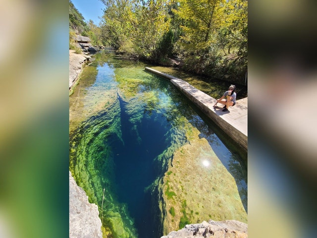 A popular swimming spot, this creek features an artesian spring & underwater caves.