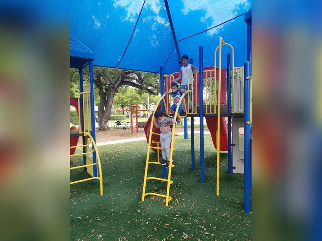 Park with tennis and basketball courts, plus a playground, picnic tables, and a gazebo.