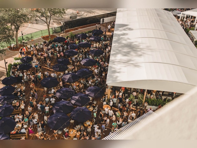 Outdoor Las Olas event space hosting live music, drinks, and food trucks.