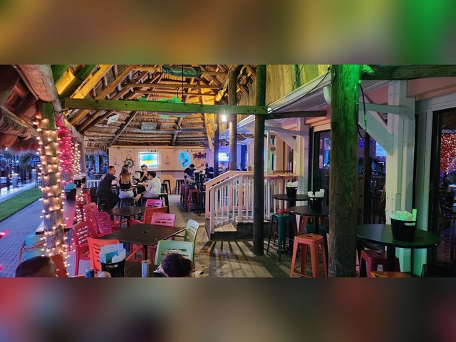 Bar and grill serving lobster tails and other comfort food in a relaxed space with live music.