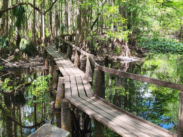 Huge park offers full camping facilities, trails & wildlife in an old-growth cypress swamp.