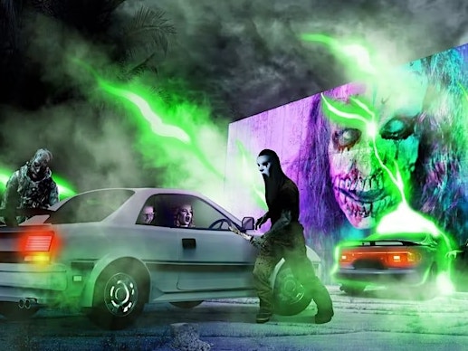 Scream n' Stream Haunted Drive is a Halloween Road and Haunted Scare Zone. Features a Haunted Drive with 7 terrifying roads plus a Haunted House.