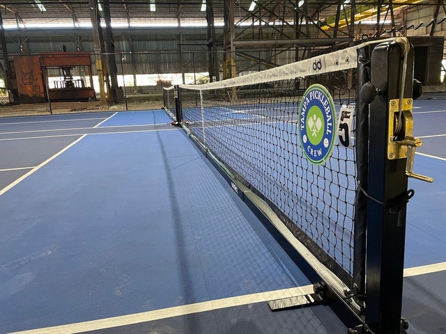 Warehouse-like venue with 8 covered courts for pickleball, plus opportunities to socialize.