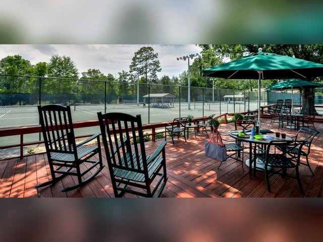 Private club with a clubhouse featuring upscale tennis courts, a golf course and a pool.