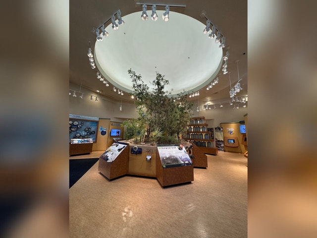Exhibits focused on nature & conservation along with an outdoor amphitheater & educational programs.