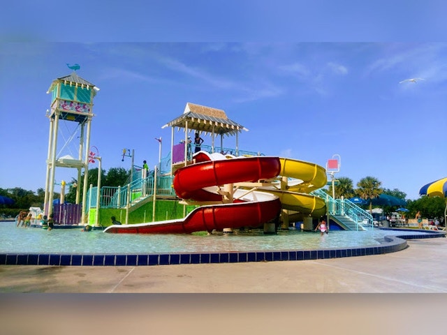 Green space boasting 2 water parks & a swimming lagoon, plus a 2-mile paved walking loop & camping.
